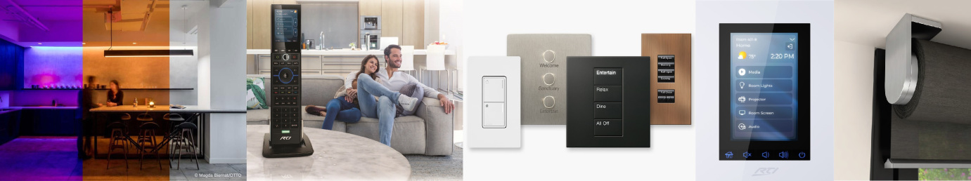 Также доступна комплектация оборудования для управления освещением, моторизированными занавесями и климатом в частных квартирах и домах, для создания уютной атмосферы.